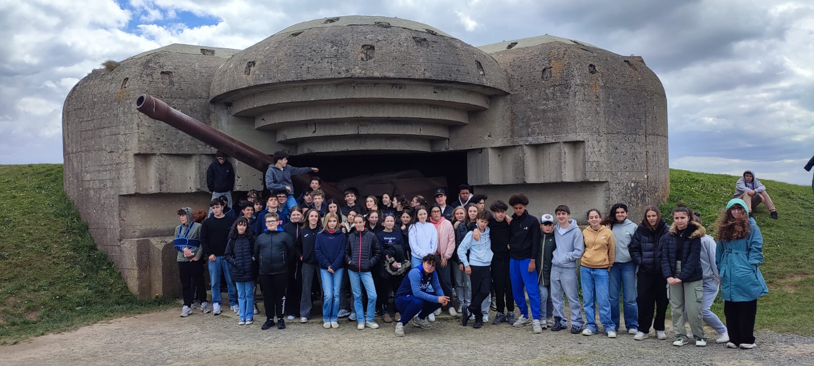 Nous avons débuté la journée par la visite du musée d'Arromanches. Les élèves ont pu peaufiner leurs connaissances sur la construction des ports flottants de Mulberry et des routes flottantes de Whale, un quai qui s'adapte au rythme des marées. L'opération Overlord n'est plus un mystère pour eux. Nos élèves ont entendu plusieurs témoignages poignants de différents acteurs de cette operation, dont celui de Philippe Kiffer de la royale Marine Commando.