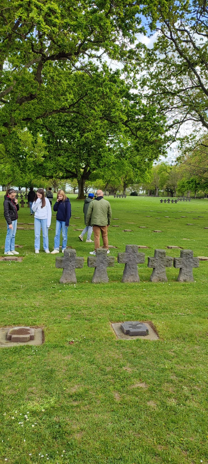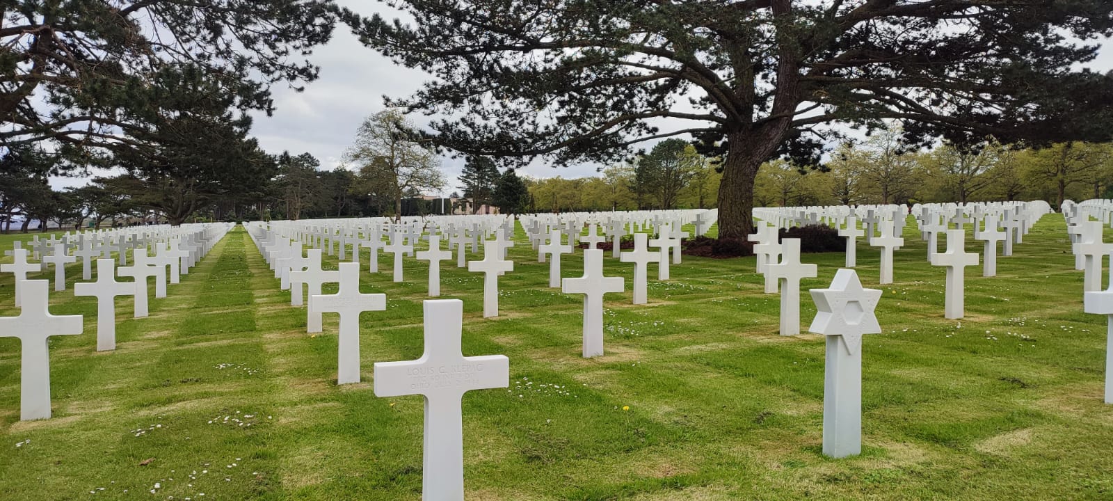Nous avons poursuivi avec la visite du cimetière Américain tant attendue, et nous n'avons pas été déçus. Au son du clairon, nous avons eu la chance d'assister à la cérémonie quotidienne des couleurs, durant laquelle le drapeau Américain est descendu puis plié de manière solennelle. Silence et respect régnaient dans tout le cimetière en l'honneur des celles et ceux qui ont donné leur vie pour nous libérer du joug nazi.
