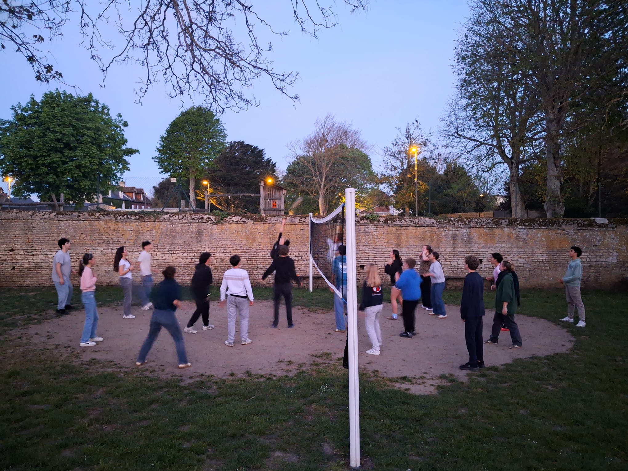 La journée s'est clôturée par un match de volley-ball épique, avec quelques règles arbitraires et un nombre de joueurs non protocolaire, professeurs et élèves mélangés.