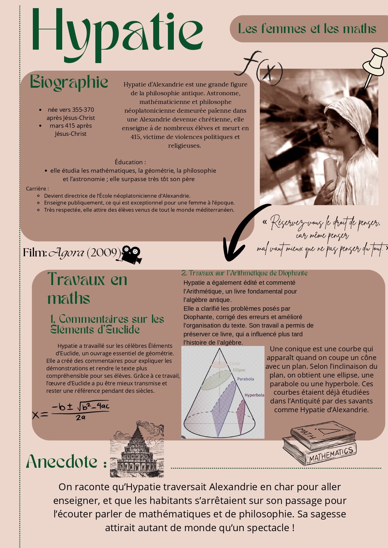 Il y a plus de 1 600 ans, Hypatie d’Alexandrie enseignait les mathématiques et la philosophie dans la ville d’Alexandrie. Passionnée par les sciences et le savoir, elle est devenue l’une des premières grandes mathématiciennes de l’histoire.